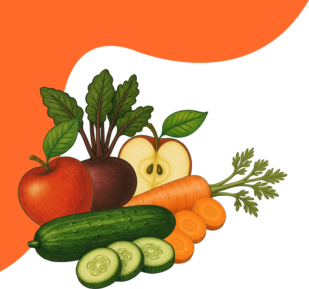 Wszystko zaczyna się w sadach i na polach, gdzie natura nadaje smak i aromat każdej kropli. Zbieramy tylko te owoce i warzywa, które są w pełni dojrzałe – prosto z natury, bez pośpiechu. Od pola do tłoczni – w kilka godzin, aby zachować maksymalną świeżość.