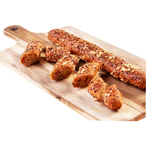 Pieczywo pszenne. Wyjątkowe połączenie pieczywa, suszonych warzyw, aromatycznych przypraw i chrupiącego sera. W efekcie otrzymujemy atrakcyjny wizualnie i smakowo produkt, który doskonale sprawdza się jako samodzielna przekąska lub dodatek do potraw z grilla.